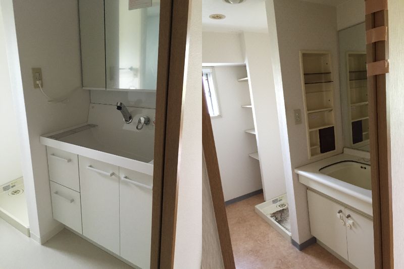 壁の収納を減らした代わりに洗面台下と鏡裏に収納を追加!シャワーにもなる洗面台で朝が快適に!