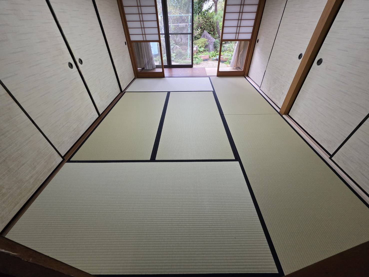 和室には和紙で出来た畳を使用しました。耐久性があるため長期間使用できます。掃除もしやすくアレルギーの原因となるダニの発生も抑えられます。今回は畳にも防虫効果を施工しました。