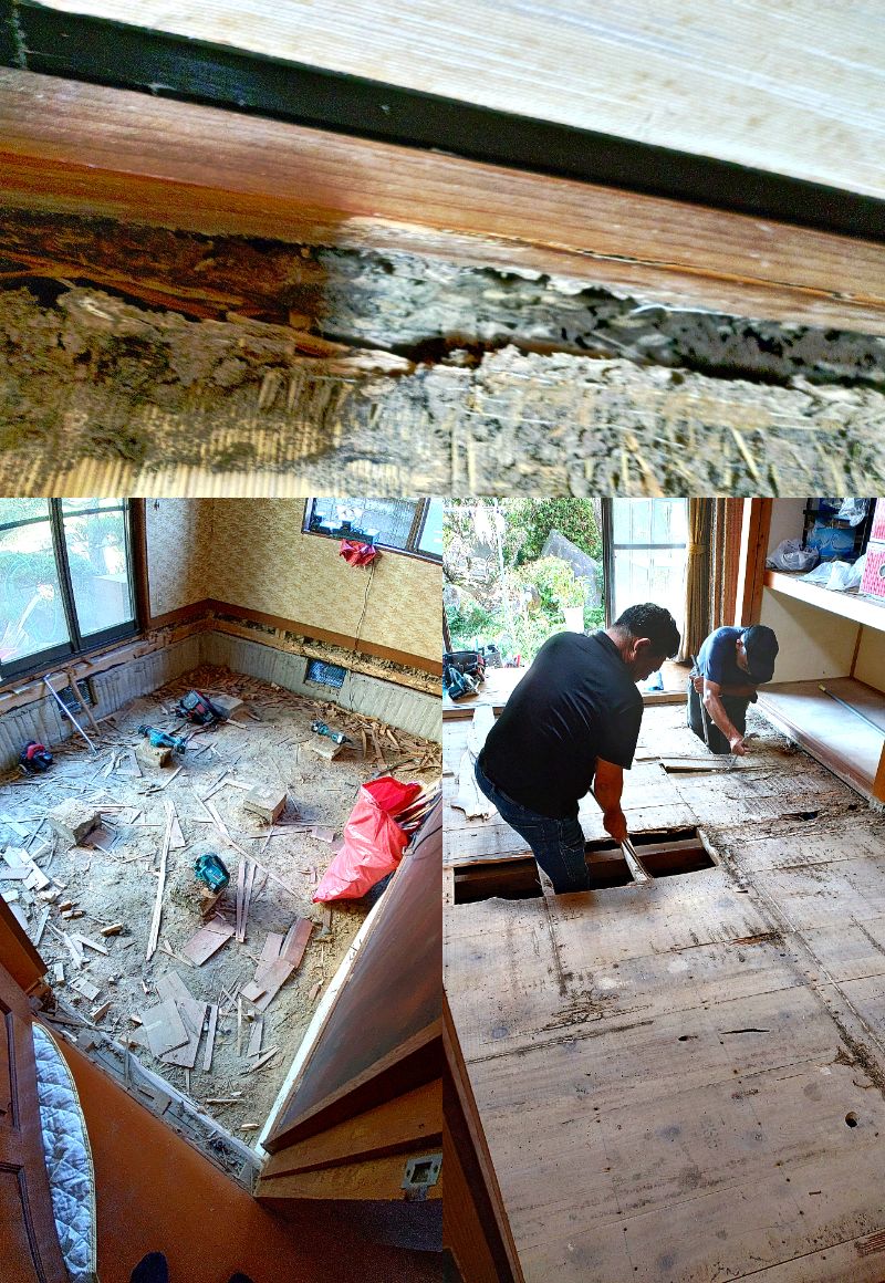畳の新調のご依頼でお伺いし、畳をめくったところ、床材にシロアリによる損傷が確認されました。見えない部分で進行していたようで、床を解体し補修を行う事となりました。