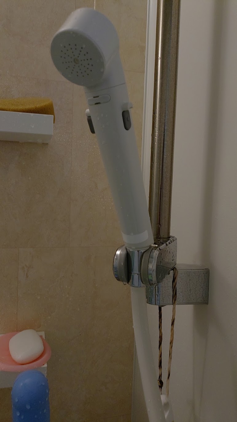1. シャワーヘッドサイドについているボタンで水の調整が出来ていない状態。